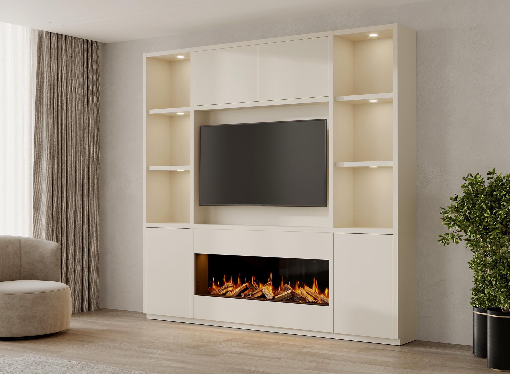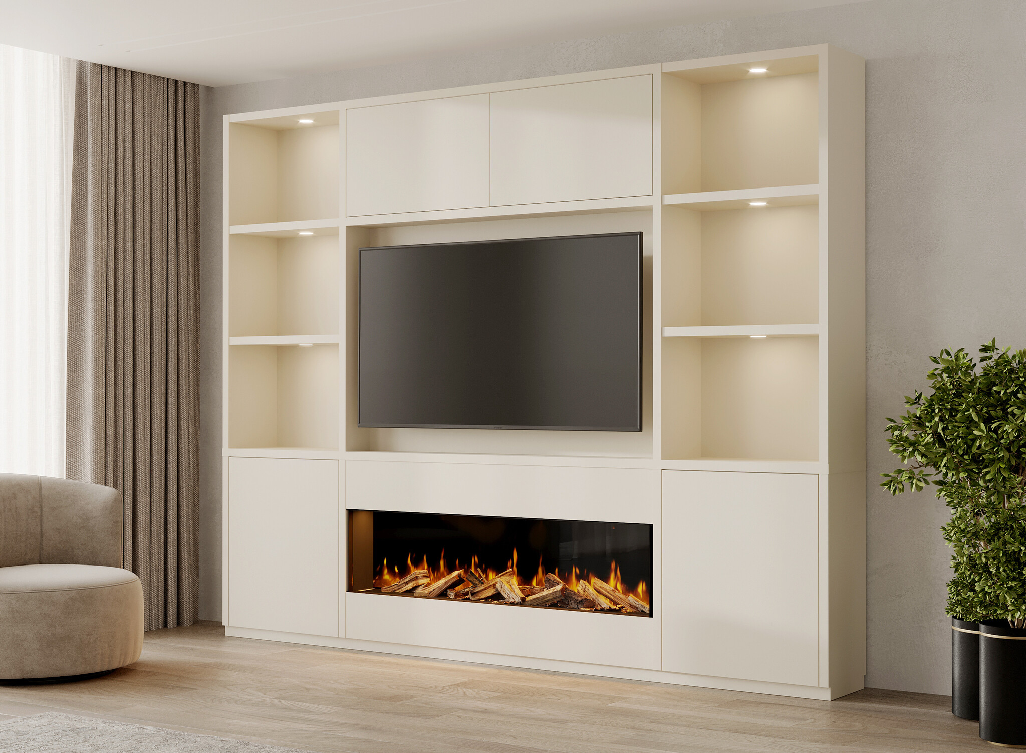 Loua wordt standaard zonder haard geleverd en focust volledig op functionaliteit en opberggemak. De indeling is zorgvuldig ontworpen, zodat het meubel zowel esthetisch als praktisch in balans is.