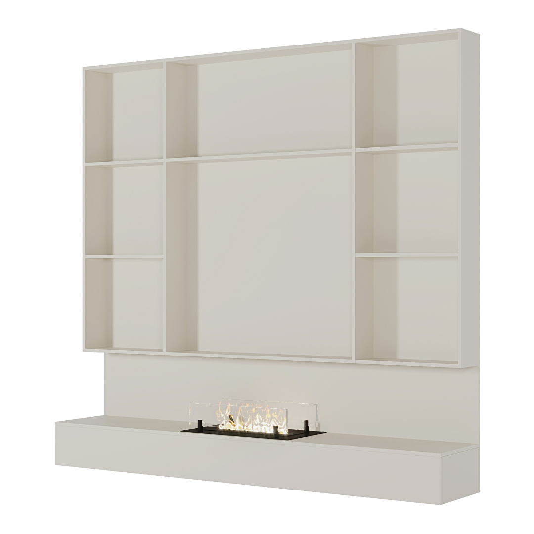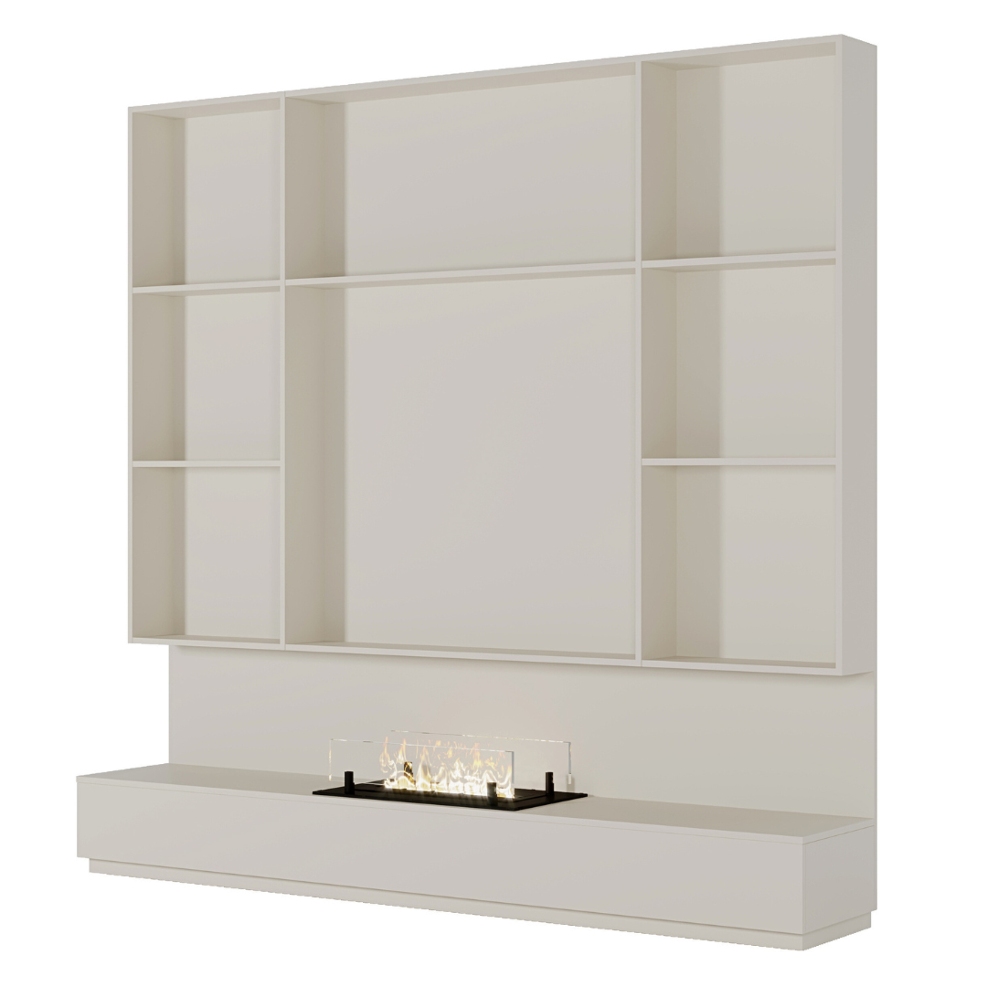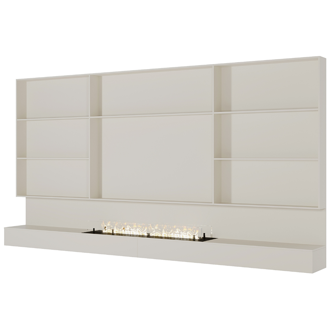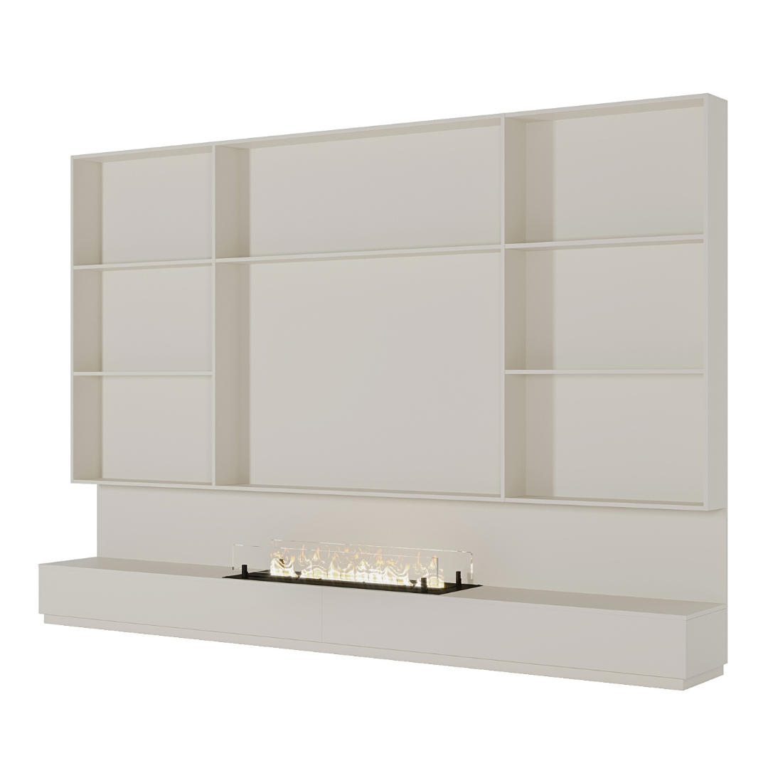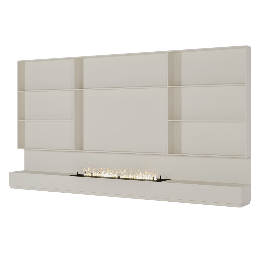 Shayn is een luxe tv-meubel dat elegantie en rust samenbrengt. De kastopbouw beschikt over open nissen voor decoratieve accenten, terwijl de onderzijde bestaat uit een strak vormgegeven dressoir. Het onderscheidende kenmerk van dit model is de geïntegreerde haard in de topplaat van het dressoir — een verfijnde oplossing die zorgt voor een harmonieuze balans tussen beeld, warmte en stijl. Verkrijgbaar als staand meubel met plint of in een zwevende uitvoering.