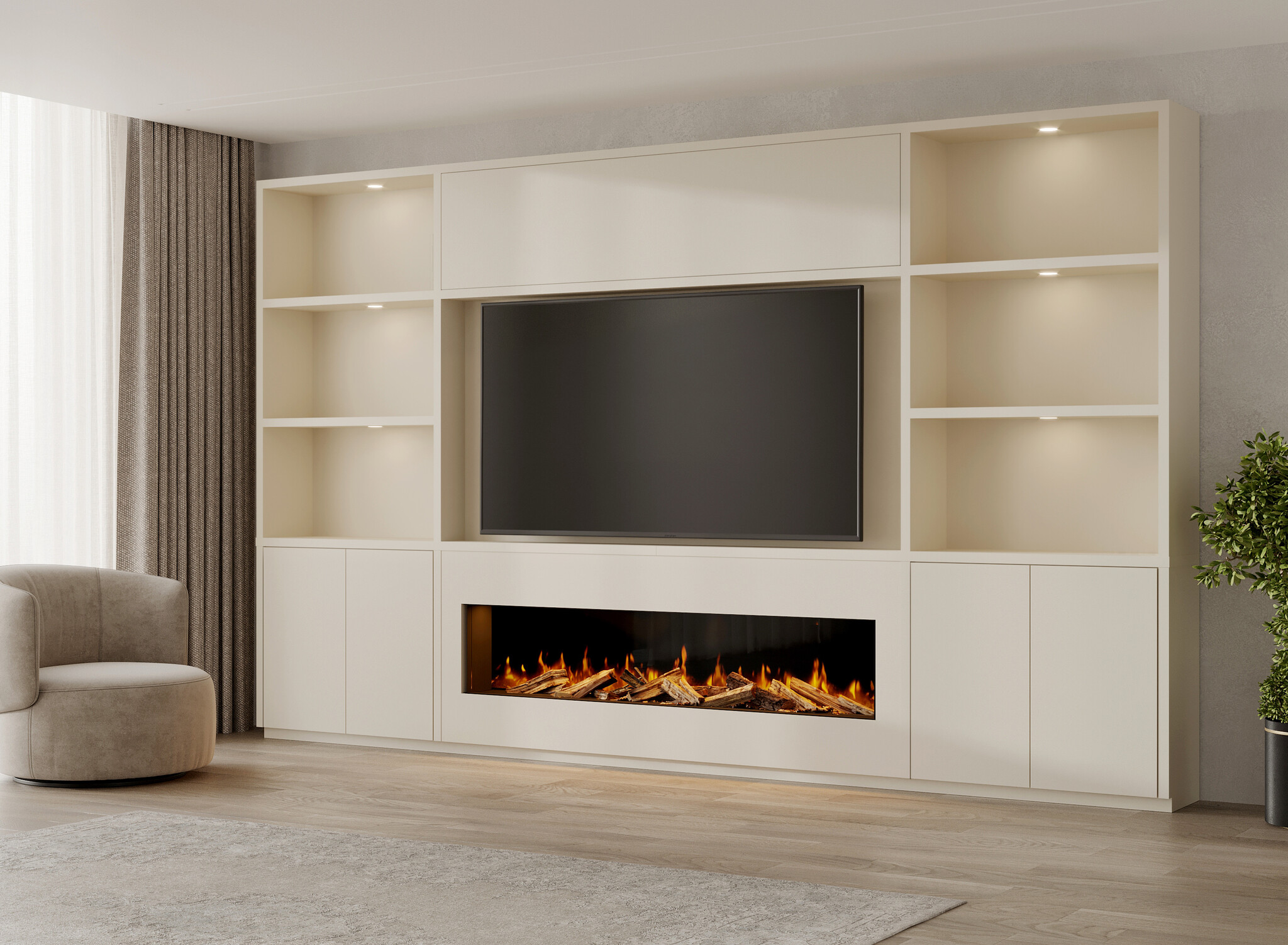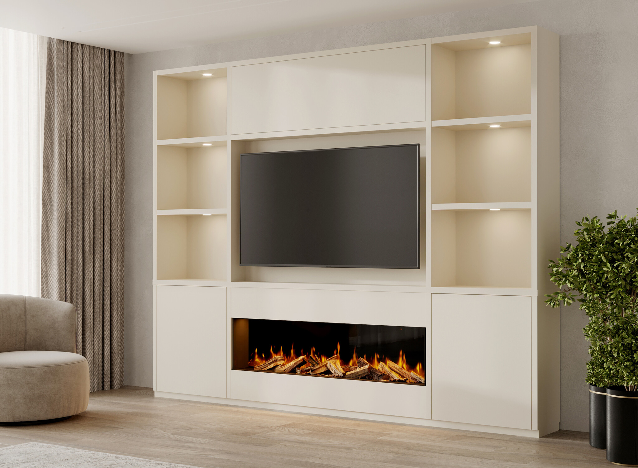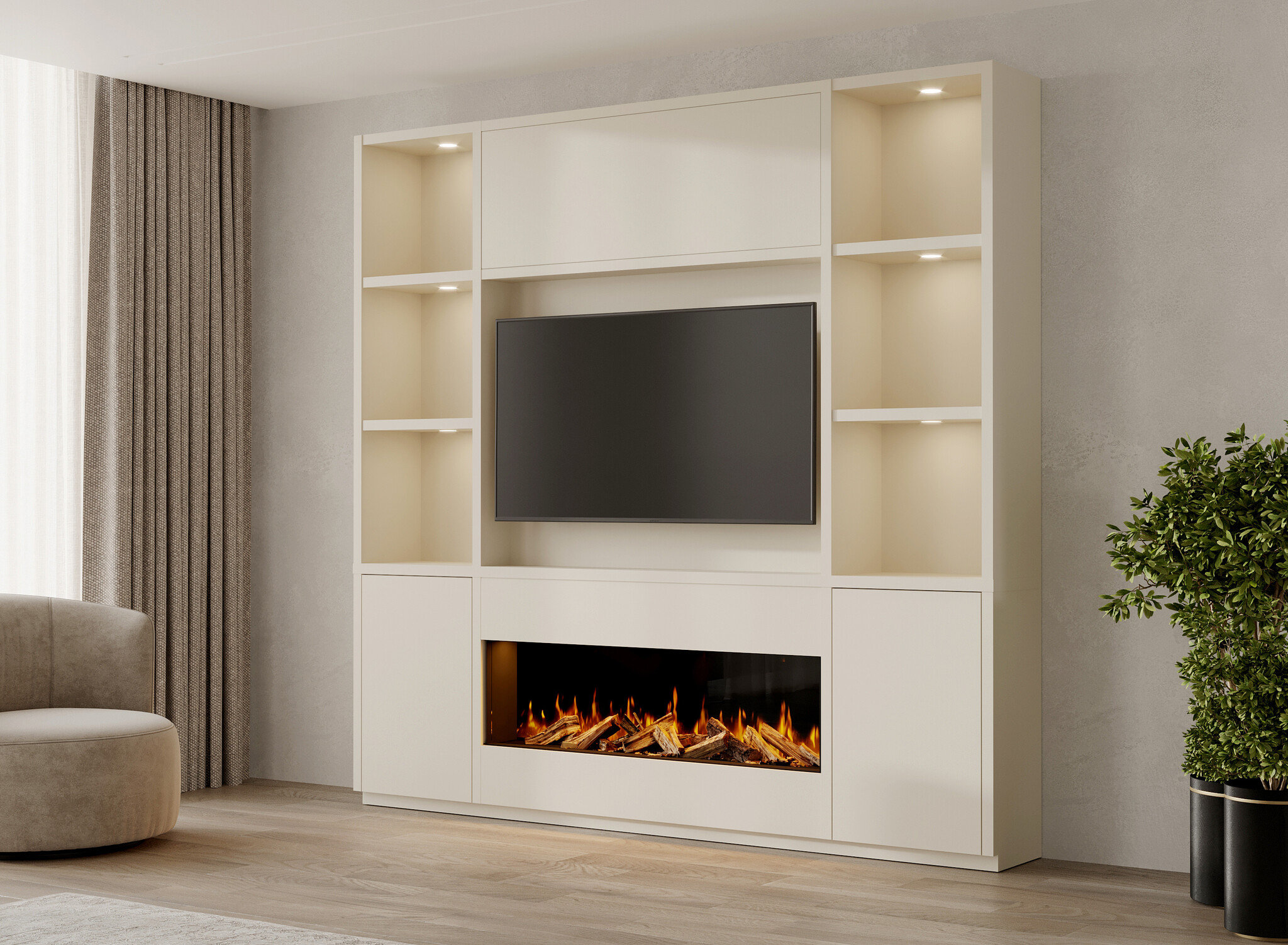 Sifra wordt standaard geleverd zonder haard, wat het meubel uitermate geschikt maakt voor klanten die een tv-kast zoeken met een rustige, minimalistische uitstraling. Wel is er voldoende ruimte voor kabeldoorvoer en media-apparatuur, waardoor het meubel optimaal functioneert als centraal tv-punt in de ruimte.